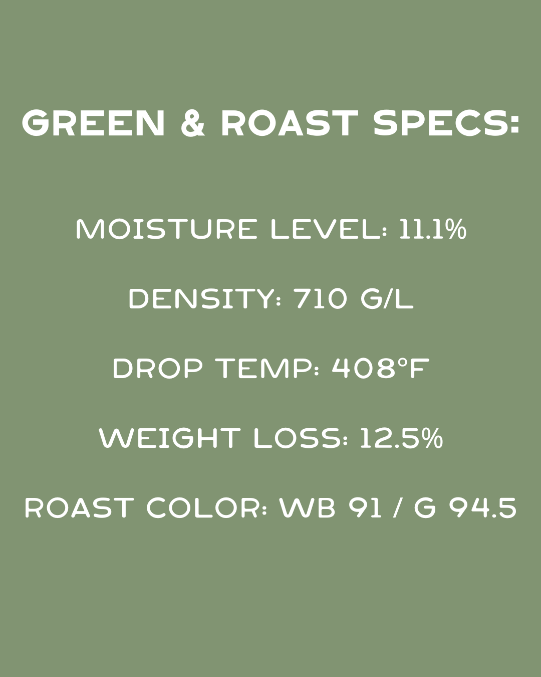 When we received this coffee, we roasted it four different ways. It tasted great in most of them except for one, where an extended roast time muted its best characteristics. For our final roast, we settled on a Maillard phase that is close to 4 minutes, which brought out the coffee’s acidity and fruitiness while balancing it with a pleasant sweetness. The result? A vibrant, fruit-forward cup that remains well-rounded and balanced.