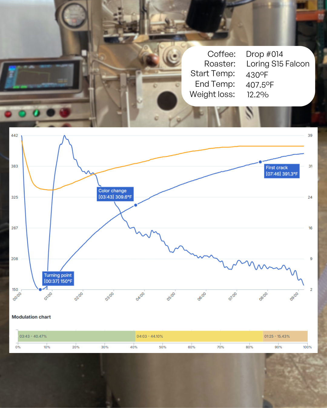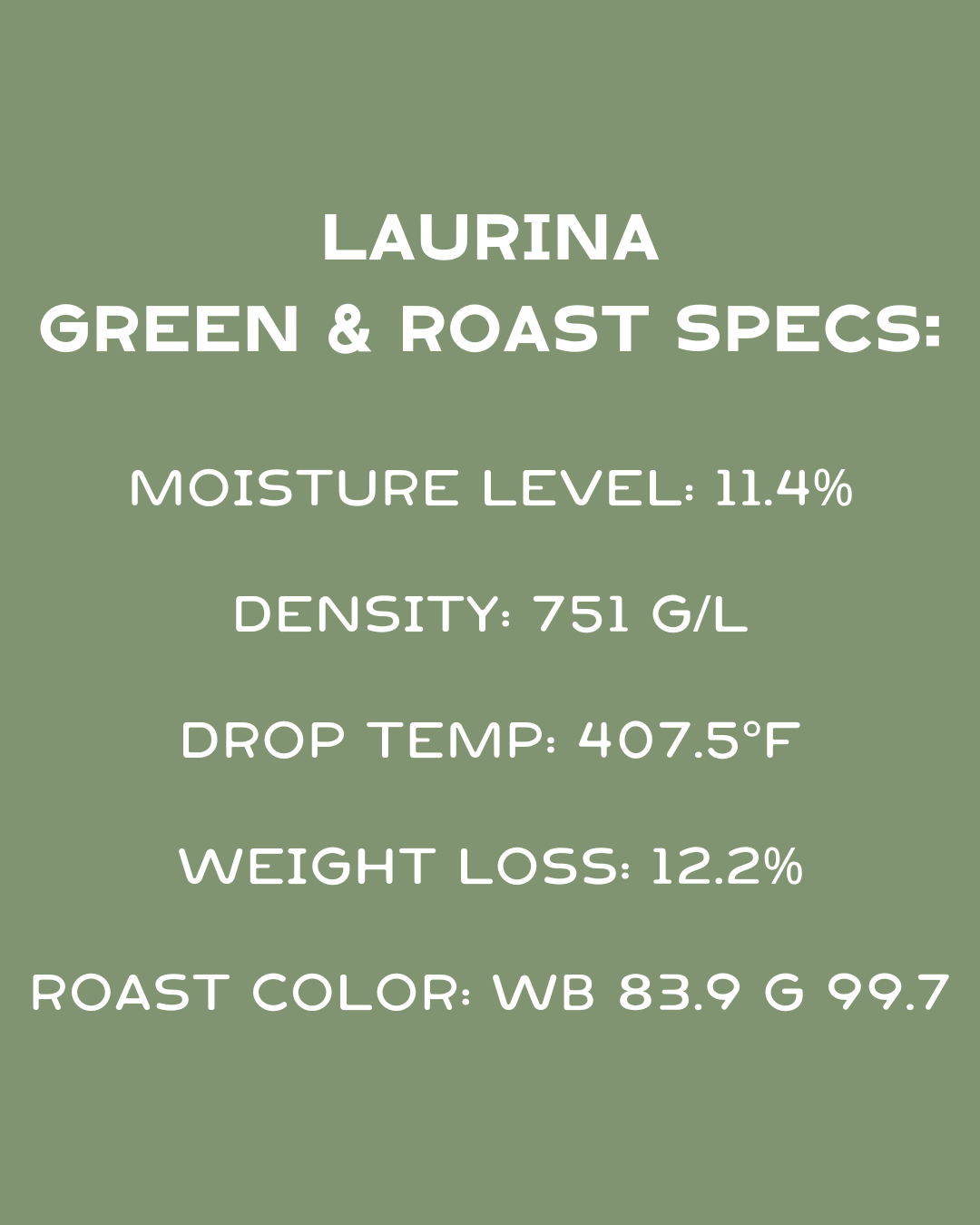 For this Laurina, we focused on highlighting its sweetness and soft, tea-like structure. Because this variety is naturally very gentle, we were careful not to apply too much heat early on to avoid scorching the beans. Instead, we used a steady, controlled application of energy to preserve its clarity and sweetness while allowing the acidity to develop gradually. By entering first crack with restraint, we brought out the coffee’s floral and honeyed character, along with subtle notes of citrus and red fruit. The result is a balanced, elegant cup that captures the refined nature of this rare varietal.