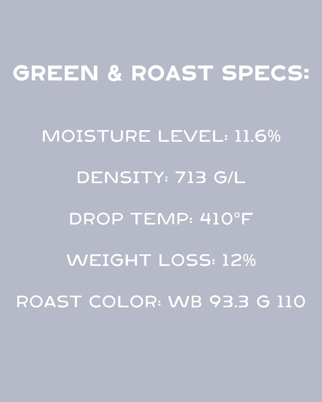 After checking the moisture content at 11.4% and considering its elevation of 1,700 meters, we knew this coffee could take the heat. We leaned into that during the roast, and it rewarded us with a vibrant and expressive cup. The profile highlights bright notes of apricot and lemon, layered with the sweetness of orange blossom and soft white florals. The result is a lively yet balanced coffee that shines with clarity and elegance.